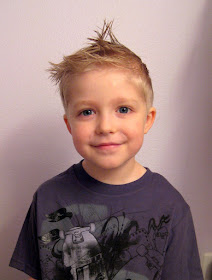 Last night the littlest monkey decided he wanted his hair short. "Like Kirby, " he said. (I believe Kirby has NO hair.) Daddy was VERY on board for this idea. Mom - not so much! Part of the fun of having shorter hair is the "bathtub mohawk". This works MUCH better now than it had before, so that's a plus. Out of the tub and a little gel and, voila!