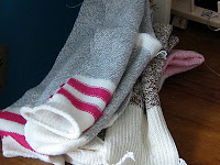 It may not seem organized but it is, I promise! Everything you see is exactly where it should be. The socks on the left? That's where I know I'll find them when I need the spare parts. I had a bin for scraps once. I filled it and I put it away. I never opened it again! This way they're front and center and will be used and the bits and pieces will be recycled as best as possible (think snow monkey ornaments.) The keyboard tray holds socks that are most likely to be used next. Think of it as a "stand-by" station.