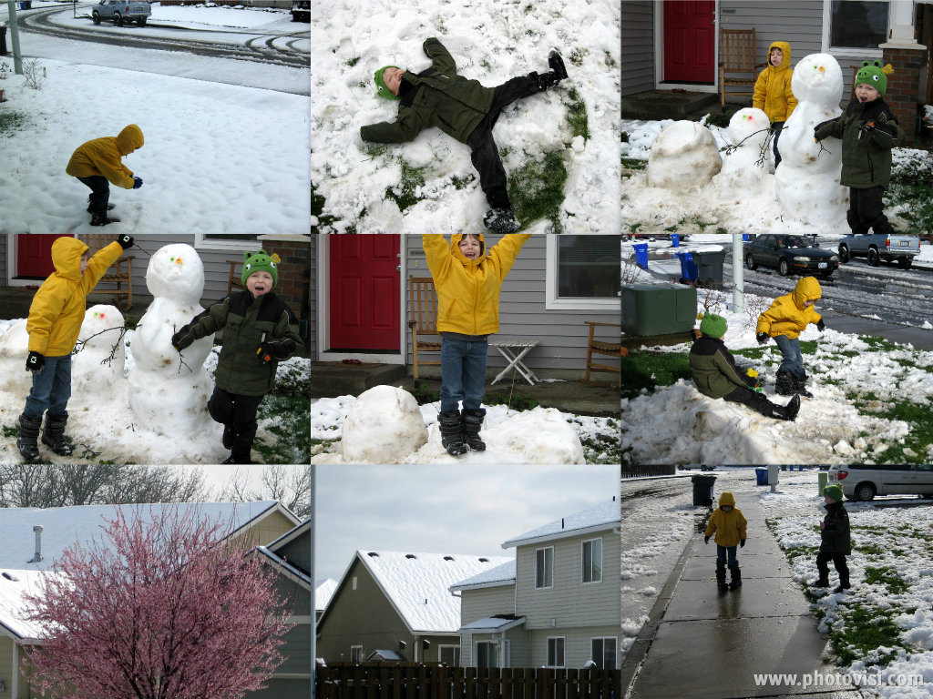 I cannot believe we got another day of snow! The monkeys and I spent two hours playing in our yard until there was almost nothing left to play in. It didn't last long, but they sure did enjoy it!