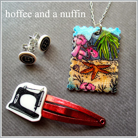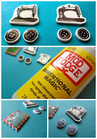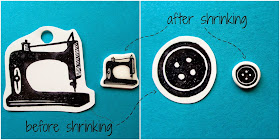 (The sewing machine, button, and state of Oregon hand carved rubber stamps can be found in my Etsy shop.  You may notice that the sewing machine is "backwards" according to the listing on Etsy.  This is because I used my master stamp to create my shrink film design.  I mention this just in case anybody might have noticed and would have thought to ask.)