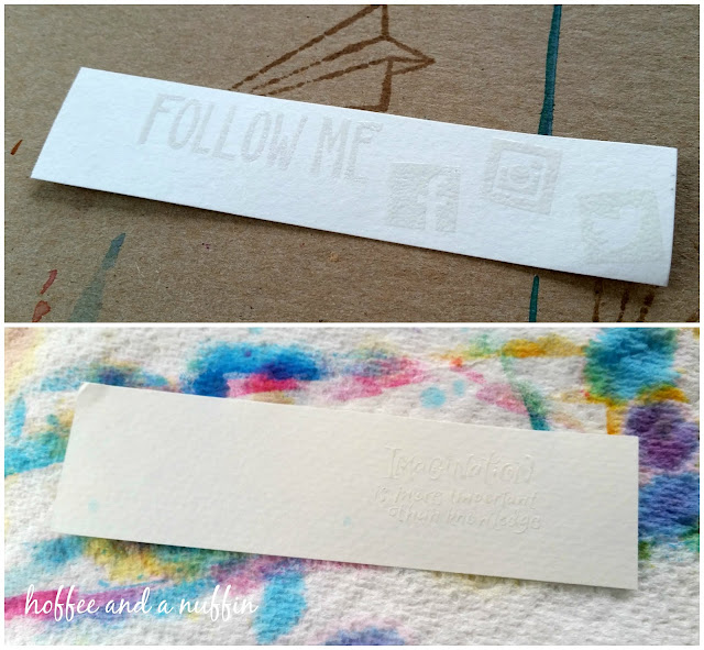 Since I like to use my note cards as Thank You cards, and because I just LOVE this chunky "Thank You" stamp by Inkadinkado, this is my go-to for these types of cards. Any sentiment stamp will work. Or, you don't have to use any type of sentiment stamp at all. It's up to you! I happened to have this Ranger archival ink pad out, and because it has permanent, waterproof ink, this is what I used on my cards.