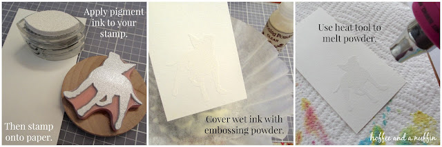 Often, when I'm testing out a new rubber stamp design, I'll stamp the image repeatedly over a sheet of cardstock, then splash a bit of watercolor on it. (If you follow my adventures on Instagram you've probably seen the timelapse videos showing the process.) It's simple and so much FUN! Then I have a handmade, hand stamped sheet that I can cut down to make note cards. You can make your cards in any dimension that you'd like, with any medium and supplies you have on hand, but I'll include notes below for how I made mine.