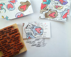 Since I like to use my note cards as Thank You cards, and because I just LOVE this chunky "Thank You" stamp by Inkadinkado, this is my go-to for these types of cards. Any sentiment stamp will work. Or, you don't have to use any type of sentiment stamp at all. It's up to you! I happened to have this Ranger archival ink pad out, and because it has permanent, waterproof ink, this is what I used on my cards.