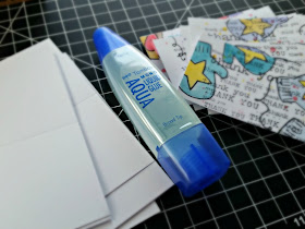 Now that my stamping is finished, it's time to attach the cards to the card bases. Tombow Mono Liquid Glue is one of my very favorite adhesives to use. (My kid's too. I know because he's ALWAYS stealing mine to use on his art projects. I've since learned to buy them two at a time.) That's just me. Use your favorite adhesive or tape runner to attach your cards to their bases.